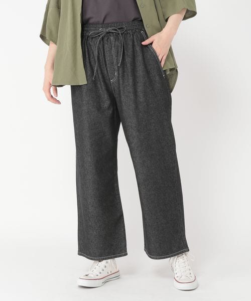 ーーー 少し落ち感のある柔らかな風合いが特徴的なレーヨン混の夏のデニムが登場! 抜け感ある配色ステッチがカジュアルな印象に。 ーーー 真っ直ぐ伸びるストレートシルエットはサンダルやスニーカーと合わせると足長効果が出るアイテムです◎。