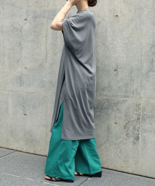 【デザイン】 リラックスな雰囲気のチュニックで、フレンチスリーブが女性らしさをプラスしています。 長めのレングスでスタイルカバーをしてくれる1枚です。 【素材】 しなやかな肌触りのレーヨンコットンの素材を使用しています。 【スタッフ着用レビュー】 フレンチスリーブは二の腕がしっかり隠せるので、安心して着用できます。サイドにスリットが入っており、ワイドパンツと合わせても重くなりすぎず、すっきり見えます◎