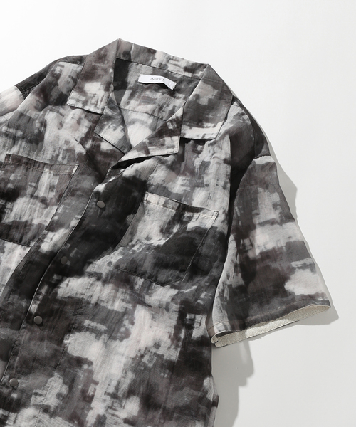 シアーリップ素材にオリジナルの迷彩柄を大胆にプリントを施したシャツ。 涼しく着られ、サイズ感もゆったり目なのでユニセックスで着用頂けます。 ********************** 裏地:なし 伸縮性:なし 光沢感:無し 生地の厚さ:普通 ********************** 【スタッフ着用コメント】 《スタッフH》 身長:177cm/体重:65kg/体型:中肉中背/普段サイズ:L/着用サイズ:L サイズ感: ややゆったりするサイズで着用できます。 素材感:通気性が良い。 着心地:柔らかく軽量。 ********************** ※商品の色味はスタジオ撮影(*全身画像より後ろのもの)の画像を参考にして下さい。 ※商品の色味につきまして、お客様のお使いのPCのモニター環境により実際のカラーと画像の色味が違って見える場合が御座います。予めご了承の上、ご注文下さい。 ※店頭・外での撮影画像は光の加減で、実際の商品より明るく見える場合が御座います。 モデルサイズ:身長:178cm 着用サイズ:L 本体:洗濯機洗い(弱)、色あせ、太い繊維の使用、配色製品