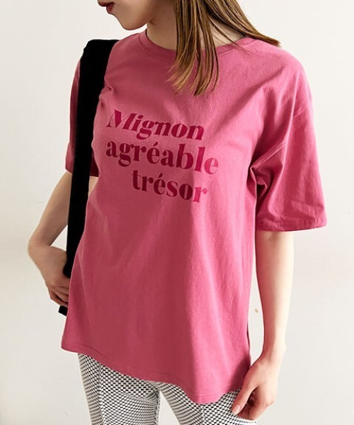 配色のきいたロゴプリントが主役のTシャツ。丸みのある可愛らしいフォントを使ったロゴプリントがポイント。 肌触りの良い綿天竺素材を使用、体にぴたぴた市過ぎないサイズに仕上げています。 トップスインしても、ウエスト周りがゴロつきにくいシンプルな着丈です。 ※ロゴの意味 「mémoire éclatant」色鮮やかな思い出