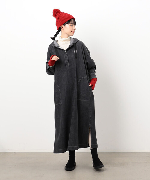 ◆ONIGIRI(おにぎり)のデニム ビッグパーカワンピース◆ 《素材》 6.2オンスで軽やかなライトオンスのコットンデニム素材です。 程よくハリ感があり、さらりとした肌触りです。 洗い加工を施し、デニムの味わいを出しています。 また、別地にジャージ素材を使い、やわらかく、着心地良く仕上げました。 インディゴカラーとブラックデニムの2色展開です。 《デザイン》 普通サイズのパーカを2倍のサイズ感にアレンジした、ビッグパーカ。 オーバーサイズのゆったりとしたデザインで体をすっぽりと覆い、 体のラインが出ない、リラックス感のあるワンピースです。 後ろヨークをジャージ素材にして、動きやすさや着心地の良さも兼ね備えました。 また、シームポケット付きで、 ポケット袋布を配色のWステッチにしてアクセントにしました。 両脇裾に深めのスリット入りでパンツとのレイヤードも楽しめる一枚です。 刺繍のロゴマークがワンポイントになっています。 …………………… 透け感:無し 厚さ:普通 伸縮性:インレイジャージ部分あり 光沢感:無し 裏地:無し ポケット:あり 洗濯方法:洗濯機洗い可 …………………… ※サンプルで撮影している為、実物と若干異なる場合がございます。 予めご了承くださいませ。 ※画像の商品はサンプルとなりますので実際の商品と仕様、加工、サイズが若干異なる場合がございます。 ※こちらの商品はFIVE FOXes独自の採寸方法となっています。 本サイトのサイズガイドと採寸方法が異なる場合がありますのでご了承ください。