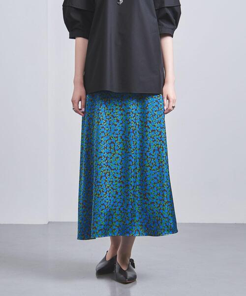 優美なドレープを描く素材を用いたロングスカート ■デザイン すっきりとしたフレアシルエット。 ウエストは、前はベルト、後ろはゴム仕様。 きちんと見えつつ、リラックスした穿き心地が魅力です。 ■素材 しっかりとした肉感で、上品な光沢のあるサテン生地。 プリントは、アニマルモチーフのような抽象的な小花柄です。 ■コーディネート 裾に掛けて緩やかに広がるシルエットで、オンオフ問わずに好印象を誘う仕上がりです。 Tシャツはもちろん、きれいめなブラウスなどを合わせた着こなしにも活躍します。 ============================ 裏地:あり 透け感:なし 生地の伸び:なし 光沢感:あり ケア方法:手洗い可・ドライクリーニング ポケット:あり ============================ 【注意事項】 ※商品を使用前に、タグ等に記載されている「取り扱い上の注意書き」、「洗濯表示」を必ずご確認ください。 ※商品画像は、光の当たり具合やパソコンなどの閲覧環境により、実際の色味と異なって見える場合がございます。予めご了承ください。 ※商品の色味の目安は、商品単体の画像をご参照ください。 店舗へお問い合わせの際は、全国のUNITED ARROWS各店舗まで下記の品名/品番をお申し付け下さい。 品名:UWSC FLORET/PRT SK 83 品番:15241625097