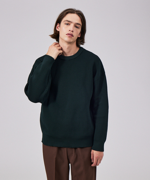 ■デザインゆとりのあるサイズ感のポリエステルニットのニットソーです。シンプルな洗練されたデザインでトレンド感もあり、男性女性関係無くユニセックスで着用できる嬉しいシルエットです。■素材もちもちとした肌触りがやみつきになる、気持ちのいい生地感になります。ニットの編地特有のストレッチを感じられる素材です。とにかく軽くてストレスフリーです。■スタイリングデニム、ワイドパンツ、カーゴパンツなどのカジュアルなアイテムはもちろん、スラックスのようなキレイめなアイテムまで幅広くスタイリングを楽しんでいただけます。レイヤードで同素材 同色でのカーディガンとアンサンブルもありです。カラー展開も今季トレンドのダークグリーンやインナーでも1枚でも合わせやすいニュアンスカラーのグレー、ベージュ、ブラウンの4色展開