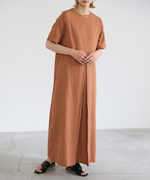 -point- & -styling- シルエットの美しさにこだわったマキシ丈ワンピースです。 裾にかけて自然に広がる美しいフレアシルエットにフロントタックでスタイル良く着こなせる一枚です。 コンパクトなデザインの顔周りは適度に余裕を設けたのできれいな見え感はキープしつつも楽な着心地です。 センターバックと袖口のショートスリットもさりげないポイント! トングサンダルなどラフなフラットシューズ合わせがおすすめ◎ ハーフスリーブフレアロングワンピース ---------------------------- 素材 レーヨン54%・ポリエステル31%・ナイロン15% ---------------------------- 伸縮性 なし 裏地 なし ---------------------------- ※モニター・環境等により実際の商品と多少色味が異なって表示される場合がございます。 予めご了承をお願いいたします。 【お買いものをお楽しみいただく為に!】 ▼商品のお気に入り登録 完売カラーの再入荷通知や、ラスト1点の通知、セールの通知も受け取ることができます。 ▼ブランドのお気に入り登録 新商品や再入荷など、いち早くブランドのお得な情報を受け取ることができます!