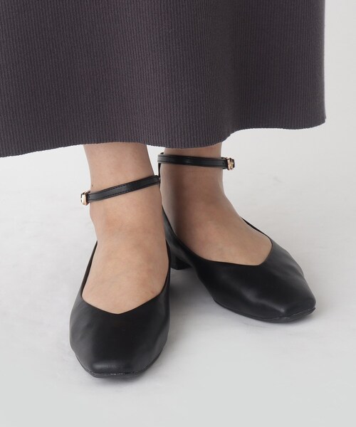 【My style is...掲載】 スッキリとしたスクエアトゥの3WAYで楽しめるフラットパンプス 【デザイン】 Vカットの履き口がポイントのスクエアトゥのフラットシューズに取り外し可能な2本のストラップを付けたデザインパンプス。 ストラップを外した状態・本体共生地のストラップ・スクエア型チェーンの3パターンで楽しめます。 ほっそりと華奢に見えるシルエットに、スクエアトゥでモードな印象を加えられる履きやすいデイリーシューズ。 【素材】 スムースフェイクレザー素材使用することで、デイリー使いからモードなスタイリングまで幅広くお使いいただけるアイテム。 アッパー内側はソフトなジャージ素材で足当たりが優しく、靴自体の屈曲性がよく靴が足についてくるので歩きやすさも◎ つま先部分に抗菌防臭加工を施し、シンプルでありながらトレンドをプラスした1足です。 ※この製品のつま先部分には、抗菌防臭加工を施した素材(バクテシャット)を使用しております。この効果は永久的ではありません。 店舗へのお問い合わせ商品番号:C71-25005 ●製品寸法: 02(23.5~24.0cm):ヒール高1.5cm 幅7.5cm つま先6cm 03(24.0~24.5cm):ヒール高1.5cm 幅7.8cm つま先6.5cm 備考:重量:03(24.0~24.5cm)片足約220g