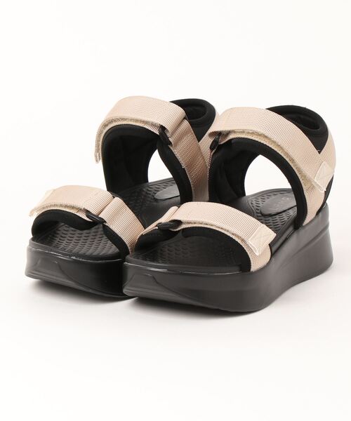 ラクに履けてオシャレ見えするスポーティな厚底サンダル。 手軽にトレンド感のあるこなれカジュアルを完成させてくれる人気アイテムです。 つま先と足首の2カ所のポイントで、足をしっかりとホールドするストラップデザイン。 ベリっと剥がせる面ファスナー仕様なので、足に合わせてフィット感を自在に調整できるうえ、着脱もスムーズに行えます。 またスポンジ入りの柔らかなジャージ素材を採用し、素足で履いても優しい足あたり♪ トレンドの厚底スタイルによる、自然なスタイルアップ効果もうれしい所♪ 安定感のあるフラットな歩きやすさと、スニーカーのようなクッション性で、たくさん歩く日も活躍しそう。 サッと履けてパンツにもスカートにも様々なコーデにマッチする楽チンサンダル! ソックスと合わせた遊び心のあるファッションも楽しめます。 ●サイズ換算目安:S(22-22.5cm)・M(23-23.5cm)・L(24-24.5cm)・LL(25cm) ※展開サイズ:レディース ・素材:ポリエステル/他 ・アウトソール:合成底 ・ヒールの高さ:約6.0cm ・ストームの高さ:約4.0cm ・サイズ感:ゆったり(個人差がございますので目安です)