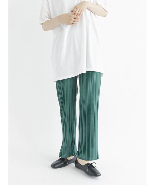 軽やかな夏スタイルを楽しめるプリーツパンツ。 さらりと肌当たりも良く、ウエストはオールゴム仕様と穿き心地も言うことなし!落ち感のあるストレートなシルエットが、上品見えし、美脚にも効果的。 シンプルながらも、ワンランクアップのコーデを楽しめます。 ※商品画像は、撮影環境やお客様のご利用のPC・スマートフォンの モニター環境などにより実物と色味に差異がある場合がございます。 【その他採寸】 F ウエスト:[ゴム仕様] 58cm