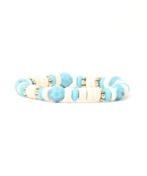 ターコイズブルーのビーズが青い海や空を想わせるブレスレット。夏コーデのアクセントにぴったりなデザイン。重ね着けもおすすめです。※こちらの商品は1点1点職人による手作りとなります。その為、形や色合いなど若干異なる場合がございます。あらかじめご了承ください。Amina Collection Co.,LTD.