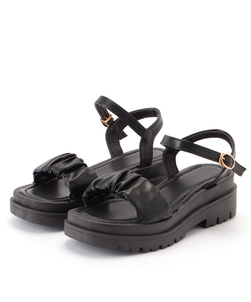 ギャザーベルト厚底サンダル ギャザーを寄せてくしゅっとさせたベルトデザインがポイントの厚底サンダル ボリュームのあるソールと細いアンクルストラップのコントラストで、足元を華奢に魅せてくれます◎ つま先からかかとにかけて高低差の少ないプラットフォームタイプなので、安定感があって履き心地も抜群です! カラーはベーシックな2色展開。 カジュアルにもきれいめにも合わせやすく、モードな雰囲気をプラスするブラック。 どんなスタイルもフェミニンに仕上げ、柔らかな印象を与えるアイボリー。 どちらも大人可愛い着こなしに欠かせないアイテムです。 ■カラー アイボリー、ブラック ■サイズ(日本サイズ) 【35】22.5cm 【36】23.0cm 【37】23.5cm 【38】24.0cm 【39】24.5cm 【40】25.0cm <注意点> ・色合いはモニター環境により若干の誤差が出ます。 ・サイズは測り方により若干の誤差が出る場合がございます。 ・入荷・生産時期により、色、サイズ、素材など多少異なる場合がございます。 ・本製品は生産過程におきまして、生地を織る際の糸の継ぎ目や多少のほつれが生じることがあります。 ・簡易包装となっており、保管・梱包時にシワ・偏りが伴う場合がございます。 ・靴箱は、海外からの入荷及びお届け迄の配送の過程で汚れや破損のあるものがございますが、 予めご了承ください。