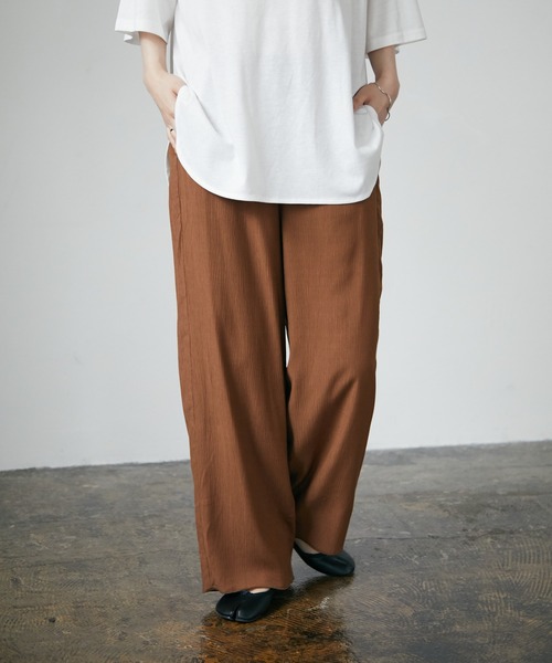 *夏にぴったり、”さらり”と肌離れの良いヨウリュウ地。*程よいゆるっとさで、ストレスフリーなワイドパンツ独特なシワ感のある楊柳素材で仕立てた、清涼感あふれるイージーパンツ。ゆるっとした軽やかなテーパードシルエットがポイント。ウエストは後ろゴム仕様で穿き心地が良いのも魅力です。シンプルなデザインで合わせるシーンやテイストを問わず、幅広く活躍してくれるアイテム。◆Item Review透け感[無し]裏地[すべて有り]伸縮性[無し]光沢感[無し]生地の厚さ[普通]付属品[無し]ポケット[有り]前2つ ※モデル着用画像は、光の当たり具合で色味が違って見える場合がございます。商品の色味は、物撮りの画像をご参照ください。 ̄ ̄ ̄ ̄ ̄ ̄ ̄ ̄ ̄ ̄ ̄ ̄ ̄ ̄ ̄ ̄ ̄ ̄ ̄● CRAFT STANDARD BOUTIQUE ●(クラフトスタンダードブティック)丁寧な作りのアイテム、一生飽きないアイテム、毎日の気分を変えるアイテム。それらをキュレーションしたお店が『クラフトスタンダード ブティック』です。▼商品のお気に入り登録がおすすめです ▼商品ページ内のハートマークをクリック。完売時の再入荷や、最後の1点の通知、最後の1点など、お得なお値下げ情報を受けとる事ができます。【お知らせ】ページでも通知が確認できます。 ̄ ̄ ̄ ̄ ̄ ̄ ̄ ̄ ̄ ̄ ̄ ̄ ̄ ̄ ̄ ̄ ̄ ̄ ̄