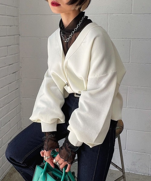 オーバーサイズで丸みのあるシルエットとボリューム袖で、さらっと羽織るだけでこなれ感のあるスタイルが完成するニットカーディガン程よい厚みと、もっちりとした膨らみのある素材を使用しています。後ろ裾のみをリブ編みにすることにより、自然に丸みのあるボリュームを持たせ、そのまま着用するだけで衿を抜いて着た時のようなシルエットになるように作りました。袖は鹿の子編みになっており、身頃の編み地との変化もさりげないポイントに◎長いシーズン使える素材感とパンツにもスカートにも合わせやすい丈感で、着回し力抜群のアイテムです!◆手洗い可◆ご自宅で手洗いができる商品です。〈注意事項〉・サンプルにて撮影をしておりますので、実際の商品とは素材やボタン等の仕様・加工・サイズ等が若干異なる場合がございます。・モニター・環境等により実際の商品と色味が多少異なって表示される場合がございます。予めご了承をお願いいたします。・撮影環境により、光の当たり具合で色味が違って見える場合があります。あらかじめご了承下さい。▼気になるアイテムは《お気に入り登録》がおすすめです!完売カラーの再入荷情報、セール情報、ラスト1点の通知を受け取ることができます!▼《ブランドのお気に入り登録》で新商品や再入荷などのお得な情報をいち早くお知らせします。