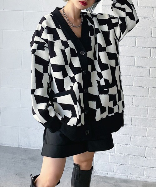 程よい厚みと張り感が特徴のニットカーディガン 裏表に違う色の糸を使用した無地の配色Wフェイスニットと、幾何学柄ジャガードの2パターンの展開です! 無地は、袖山のハンドステッチや、後ろ中心とアームホールの配色ラインがポイントに◎ ジャガードは、アームホールのラインと、大きめの柄行きの幾何学柄がトレンド感のある雰囲気に見せてくれます! 太めの前立てもカジュアルな印象に 縦長に作られたボックスシルエットは、オーバーサイズなのに着用すると縦長にすっきりと見え、こなれ感のある雰囲気に仕上げてくれます。 しっかりとした素材感なので、季節の変わり目のライトなアウターとしても活躍してくれます。 パンツにもスカートにも合わせやすい丈感で、着回し力抜群のアイテムです! ◆手洗い可◆ ご自宅で手洗いができる商品です。 〈注意事項〉 ・サンプルにて撮影をしておりますので、実際の商品とは素材やボタン等の仕様・加工・サイズ等が若干異なる場合がございます。 ・モニター・環境等により実際の商品と色味が多少異なって表示される場合がございます。予めご了承をお願いいたします。 ・撮影環境により、光の当たり具合で色味が違って見える場合があります。あらかじめご了承下さい。 ▼気になるアイテムは《お気に入り登録》がおすすめです! 完売カラーの再入荷情報、セール情報、ラスト1点の通知を受け取ることができます! ▼《ブランドのお気に入り登録》で新商品や再入荷などのお得な情報をいち早くお知らせします。