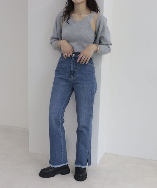 ◇fredy emue◇【2022 AW】美シルエットのフレアデニムパンツ●point・程よく細めのシルエットが美脚見せしてくれるフレアパンツ・さりげない裾スリットでショートブーツを合わせても〇・クロップド丈のトップスやジャケットと合わせたモードなスタイリングがおすすめ・シーズンレスでお使いいただけます透け感:なし裏地:なし伸縮性:なし光沢感:なし生地の厚さ:普通洗濯:手洗い可●お取扱い上のご注意●*商品を長くご愛用していただきたいため、アテンションタグを必ずご確認の上、着用又はお取り扱い下さい。*店頭及び屋外での撮影画像は、光の当たり具合で色味が違って見える場合があります。商品の色味は、スタジオ撮影の画像をご参照下さい。*商品画像に関しては出来る限り忠実に表示出来るよう努めておりますが、お客様がご利用のモニターの設定及び特性により、実際の商品と比較し色味に若干の誤差が生じる場合があります。*画像の商品はサンプルとなりますので実際の商品と仕様、加工、サイズが若干異なる場合がございます。◇商品のお気に入り登録◇【お気に入りに登録 ♡マークをクリック】を是非ご活用ください! 再入荷の通知や、ラスト1点の通知、セールの通知がいち早く届きます。◇ブランドのお気に入り登録◇新商品や再入荷など、いち早くブランドのお得情報が届きます。