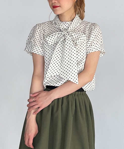 一枚で華やかスタイルが叶うドットブラウス。 ドット柄の涼し気なサッカー生地を使用。 凹凸のある生地で肌にはりつかず肌触りも良いです。 袖には肩ギャザーや袖口タックを施し、 ふわっと立体感のある可愛らしさをプラス。 ボウタイはリボン結びにもストンと一つに結んでも◎ また、後ろ襟のボタンで取り外しが可能なので、 コーデに合わせてアレンジできるのも嬉しいポイントです。 ※トルソー着用画像が一番実物に近いお色味になります。 ※撮影場所や明るさにより 実際の商品と色味が若干異なる場合がございます。 ☆商品のお気に入り♡登録を押せば ”再入荷通知”や”残りわずか通知” 値下げのお知らせが届きます! お気に入りのブランド登録していただければ新商品入荷のお知らせも届きますので 是非登録してみて下さい