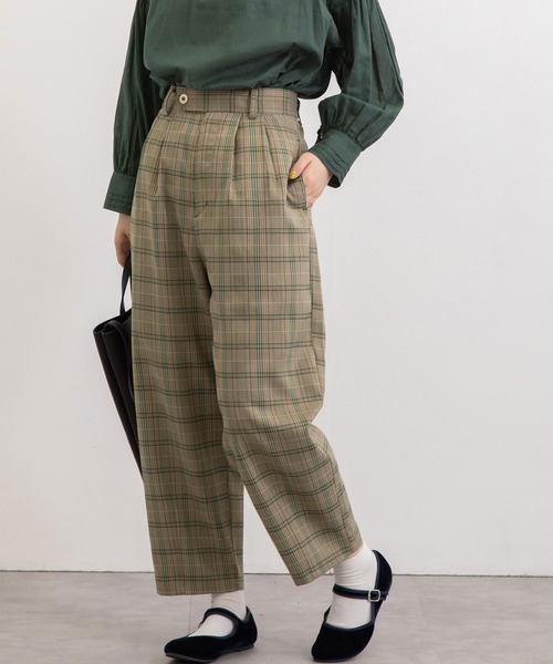 きれいめ素材仕立てのタックパンツ■Point・季節感のないきれいめの素材で、飽きの来ないトラッドなチェック2色と、ブラックの3色展開です。・ウエストの2本のタックで、ウエストまわりは程よくゆとりがあります。・裾にかけてややテーパードのすっきりシルエットです。・太めのベルトはハイウエストを保ってくれます。・ウエストはバックゴム仕様で安心感のある履き心地です。・両サイド、バックに1箇所ポケット付き。・裏地付き。--------------------透け感:なし厚さ:普通伸縮性:あり裏地:あり--------------------POU DOU DOU プードゥドゥひと手間加えた存在感のある「日常着」いつまでもときめきとかわいいを忘れない方への愛着を持てるワードローブ= お気に入り登録がおすすめ!=POU DOU DOUのお得な情報をいち早くお届け致します◎アイテムをお気に入り⇒ SALE START / 完売COLOR再入荷 / LAST1点 etc...ブランドをお気に入り⇒新商品 / 再入荷 /クーポン・セール情報 etc...