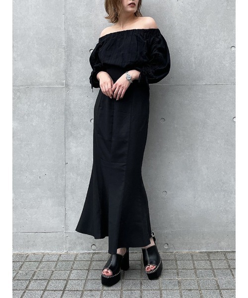 女性らしい印象を与えるマーメイドSK。 後ろのレースアップとスリットがポイント。ハイウエストなのでよりスタイルアップし、抜け感あるSKとなっています。