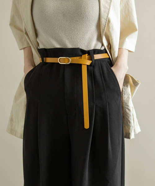 【レディーライクなスリムデザイン】 ベルト穴を設けず、好みの位置で調整が可能なリングベルトが登場。 華奢な細身デザインでウエストラインをよりスッキリ見せてくれます。 オーバル型のバックルを採用し、優しい雰囲気に仕立てました。 ※商品画像は、光の当たり具合やパソコンなどの閲覧環境により、実際の色味と異なって見える場合がございます。予めご了承ください。 ※商品の色味の目安は、商品単体の画像をご参照ください。 -
