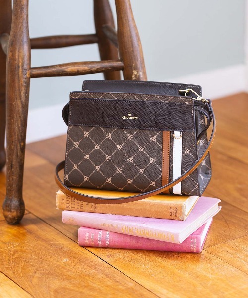 ◇& chouette(アンドシュエット)のモノグラム スポーティーラインショルダーバッグ人気のスポーティーラインショルダーバッグから「&C」ロゴと「& chouette」を格子柄に組み合わせた、オリジナルモノグラムを使用したデザインが登場♡▼機能性・背面と中にそれぞれファスナーポケットが1カ所ずつあり、取り出しが頻繁な物を分けて収納できます。メイン収納口はダブルファスナーで開閉がスムーズです。・長財布が丁度入るサイズ感なので、小さすぎず収納力があります。・程よいマチは安定して自立し、持つときも手にフィットします。・正面右側に小さなDカンを付けており、イニシャルチャームを付けるのにおすすめ♡▼スタイル・スクエア型のフォルムにスポーティーなライン使いとバイカラー配色で、高級感のあるスタイリッシュなオトナ感をプラスしたデザイン。・柄物ですが無地ライクにもお使いいただける、お洋服に合わせやすい仕上がりになっています。コーディネートのアクセントにもおすすめです♪・ベーシックなカラーの配色なので、飽きなく通年的にお使いいただけます。「&C」のアイコンは「&」の形に「C」が触れているデザインで、”あなたに寄り添う”という意味と想いを込めています。FREE:幅23cm/高さ17cm/マチ9cm/