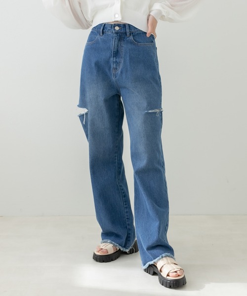 旬のダメージデニムパンツが S/Mサイズ展開で登場! ■デザイン ・左右のダメージデザインで、程よい肌見せが抜け感のあるデニムパンツ。 ・シンプルなデザインながら履くだけで旬見えしコーデのワンポイントに。 ・さらに裾はカットオフでこなれた印象に。・S、Mのサイズ展開でウエストラインも綺麗に見せるサイズ感にこだわりました。 ・ワイドなシルエットで体型カバーもしてくれ、ロングシーズン着用できる万能アイテム。 ・どんなトップスとも合わせやすく、着回ししやすいデニムパンツです。 ■カラー ・サックス/ワンウォッシュの2色展開 ■スタイリング ・甘めなブラウスでオリーブらしいガーリーMIXコーデがおすすめ。 ・Tシャツやストライプシャツで定番カジュアルスタイルも◎カーディガンで合わせるとより大人なコーディネートに。 ・足元はきれいめなミュールや厚底サンダルで女性らしさプラスしたり、秋はローファーで合わせても◎ ■pointベーシックアイテム、プチプラ、Y2K、ストリート、韓国ファッション、着回し、着まわし、大学生コーデ、通勤通学、晩夏、秋冬 韓国コーデ、夏コーデ、夏服、ハイウエスト、サイズ展開、低身長 ----------------------------- 裏地:なし 光沢感:なし 透け感:なし 伸縮性:なし ----------------------------- model:166cm 【デニム】 デニム製品の特性上、着用や洗濯によって「色落ち」「色移り」が生じます。 デニム製品の特性をご承知の上、色合いの変化をお楽しみください。 ・ご着用中の摩擦等により移染します。白・淡色系の衣服、ハンドバッグ、靴、シート等は特にご注意ください。 ・デニム製品が雨水や汗で濡れると、より色移りしやすくなります。 ・洗濯により洗液がにごり移染しますので、他のものと一緒にしないで単独でお洗いください。 ・洗濯後濡れた状態で放置されますと色移りしやすくなります。 ・色移りしやすいため、下着やインナーには暗いカラーのものを着用いただくことをお勧めいたします。 ※着用、お取り扱いの際は、商品についている品質表示とアテンションタグを必ずご確認下さい。 ※ご覧のモニター環境や撮影環境により実際の商品と多少色味が異なって見える場合がございます。 ご理解の程よろしくお願いいたします。 ■お気に入り登録のおすすめ【気になるアイテムを登録】ハートをクリックしてお気に入りに登録すると完売カラーの再入荷やラスト1点の通知、セールの通知を受けとることができます。 【ブランドを登録】新商品や再入荷、セール通知など、いち早くブランドの情報を受けとることができます。