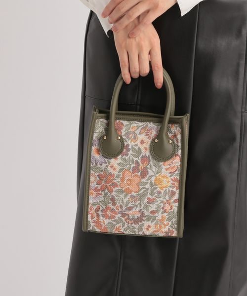 オリジナル生地を使用したゴブランミニバッグ。 コーディネートのポイントになる、小さいのに映え力抜群のアイテム。 取り外しショルダー紐つきで、スマホショルダーとしても活躍します。