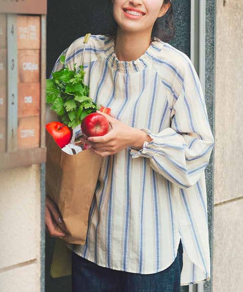 ほの甘ムードをふわりとまとう軽やかなプルオーバー ネック&袖口にシャーリングをほどこした綿100%のプルオーバーは、見た目はレディーで着心地はらくちん。 頭からすぽっと着られて、袖はたくし上げてもかわいいバランス。 背中に並んだくるみボタンで後ろ姿もぬかりなし。 細部まで凝っているのにお手ごろなのも魅力です。