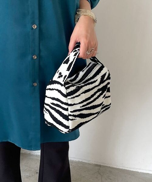 ーーー コロンとしたサイズ感でスタイリング映えするニットバッグ ーーー スタイリングに取り入れるだけで今年らしさが叶うアイテム。 目の詰まったニットで編立て、裏地付きの仕様で伸びにくくに上げました。 お手持ちのお財布、スマートフォンなど最低限の荷物をいれ、デイリー使いに◎ 無地、柄の展開でスタイリングに映える嬉しいポイント。カジュアル、モード、どんなスタイリングにも合わせやすいニットバッグです! 〈注意事項〉 ・サンプルにて撮影をしておりますので、実際の商品とは素材や仕様・加工・サイズ等が若干異なる場合がございます。 ・モニター・環境等により実際の商品と色味が多少異なって表示される場合がございます。予めご了承をお願いいたします。 ・撮影環境により、光の当たり具合で色味が違って見える場合があります。あらかじめご了承下さい。