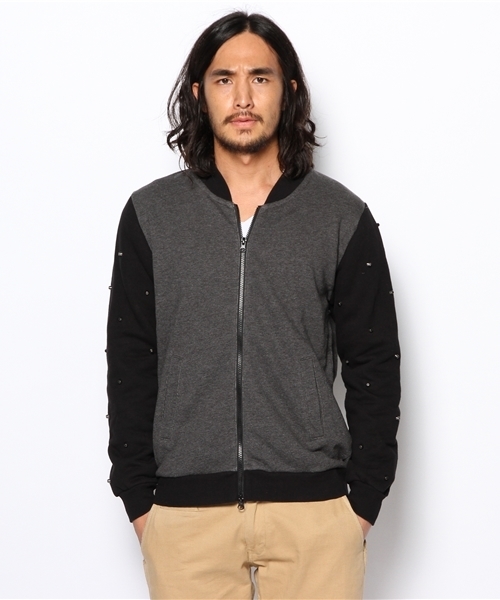 【REQUEST】ストリートモードラインのスタジャン風のカットブルゾン。袖にガンメタリックのスタッズを打ち込み、袖裏はキルティング仕様。ストリート感にモードテイストをバランス良くMIXさせたエッジの効いたカットアウターです。 model:H180 B86 W70 H86 着用サイズ:3 model:H181 B95 W72 H93 着用サイズ:3 model H175 B87 W69 H86 着用サイズ:3