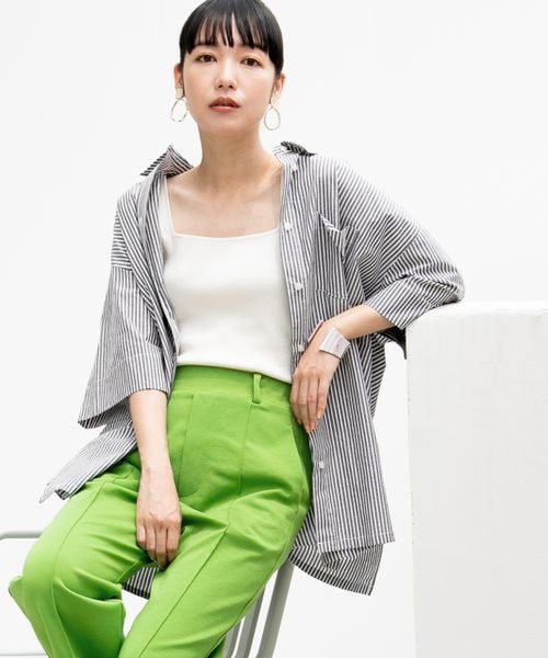 ーーー ■素材特性■ 綿のタイプライター生地を使用しています。 綿の柔らかさと軽やかさが特徴の素材です。 ■デザイン■ 鮮やかなカラー展開がポイントのストライプシャツ。 ゆとりのあるサイズ感、ワイド目な袖でカジュアルな雰囲気に仕上げました。 ーーー ■スタイリング例■ スカートとパンツ、どちらとも相性のよいアイテム。 オーバーサイズなのでタイトスカートなどすっきりしたボトムともバランスよく着こなせます。 今年らしい鮮やかなカラーを展開しているので、いつものスタイリングにプラスするだけで鮮度が出てオススメ!