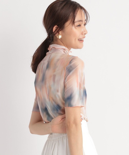 ぼかした曖昧な柄でムードが増すシアトップス。真夏はキャミソールを入れて一枚着に、秋にかけてはインナーに重宝します。ボトムを選ばず、オールインにも好相性。クールなグレーと、フェミニンをプラスできるピンクの2色展開です。ーーーーーーーーーーーーーーーーーーーーーーー▼ 商品のお気に入り登録 ▼完売カラーの再入荷通知や、ラスト1点の通知、セールの通知も受け取ることができます。▼ ブランドのお気に入り登録 ▼新商品や再入荷など、ブランドのお得な情報をいち早くお知らせ!ぜひご登録ください!※屋内外の光や照明の当たり具合で、実際の商品の色味とカラー別画像の色味に違いが発生する場合がございます。 色味はスタジオ撮影の詳細画像にてご確認ください。※生地の寄り画像が最も実物に近い色味となります。