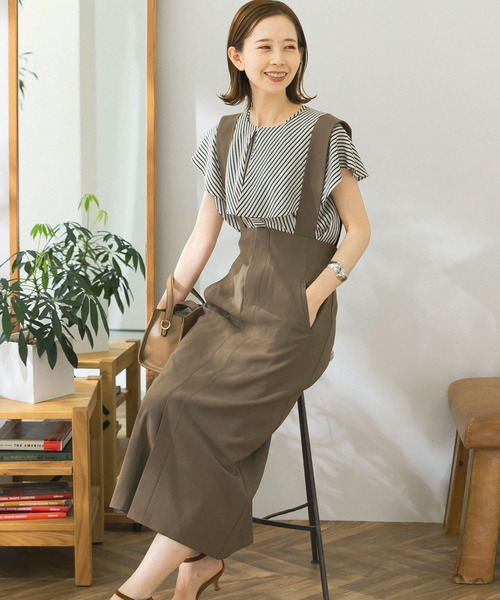 【マルチWAYで着回せる、ロングタイトスカート】 マルチWAYで着回せるサスペンダー付きのタイトスカート。サスペンダーやベルトの有無で、アレンジを楽しめる3WAYデザインです。ウエストは、後ゴム仕様のためリラクシーな着心地を実現。腰位置高めのハイウエストは、脚長効果を叶えます◎通勤から休日スタイルまでON/OFF活躍間違いなしの優秀アイテムです。 ※この製品は、長時間強い日光や照明を受けますと、変色する恐れがあります。ご着用や保管の際は、充分にご注意ください。 ※商品画像は、光の当たり具合やパソコンなどの閲覧環境により、実際の色味と異なって見える場合がございます。予めご了承ください。 ※商品の色味の目安は、商品単体の画像をご参照ください。 ----------------------------- 透け感:なし 伸縮性:ややあり 裏地:あり 光沢:なし ポケット:あり -----------------------------