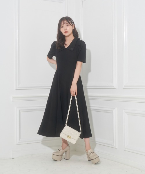 リブ生地なので着心地が良いロングワンピース。暑い日にさらりと着るだけでスタイルアップが叶うアイテムです。 大きめ衿と衿にAGのロゴ刺繍がポイント。