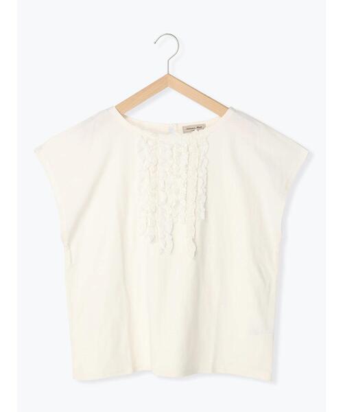 胸元のレースチュールがポイントのカットソー。 上品なフレンチスリーブで、気になる二の腕をしっかりカバーしてくれます。 綿100%で、ふんわりと優しい肌触りもポイント◎ オンオフ問わず、あらゆるシーンで活躍してくれる多彩なアイテムです。 ※商品画像は、撮影環境やお客様のご利用のPC・スマートフォンの モニター環境などにより実物と色味に差異がある場合がございます。