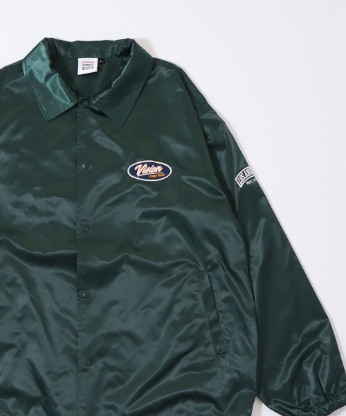 2022 autumn&winter新作---VISION STREET WEARからコーチジャケットの登場です---光沢感のあるサテンツイル生地を採用した軽アウターコーチジャケット。左胸、背面に配したロゴワッペンが90年代ストリートを彷彿させるデザインです。サイズ感は程よいビッグシルエットで、ドロップショルダーがトレンドのゆるいシルエットを演出。スケーターファッションなどのストリート系のスタイリングは勿論、アメカジやワークスタイルにもマッチします。ペアルック、リンクコーデ、カップルコーデにもおすすめ!男女共にお使いいただけるユニセックスのアイテムです。--- VISION STREET WEAR ---1976年、スケートボーディングがスポーツとして認知され、それがカルチャーとして永遠に形成されるターニングポイントを迎えていた。初の屋外スケートパークがフロリダに開設された時期に、Alan Gelfandが最初のオーリーをお披露目しVISION STREET WEARが誕生した。30年以上前に歩み始めて以来、VISIONはスケートとストリート・カルチャーの創造的で独自性を重視したブランドとして、その存在をアピールしつづけている。
