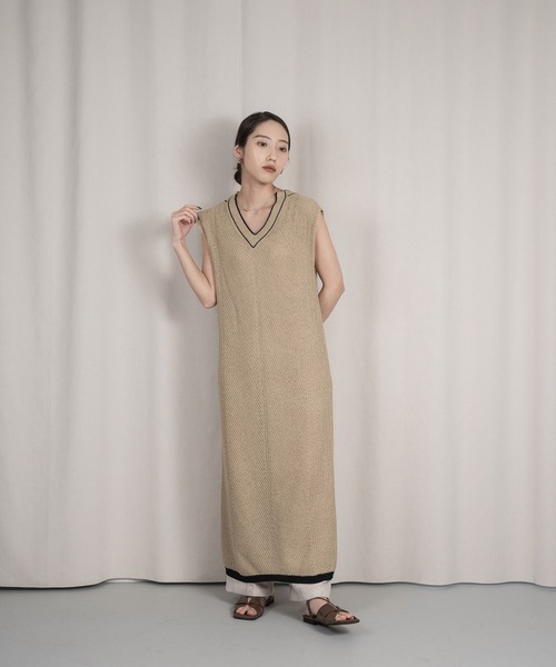 【カラースキームラインベストワンピース】 ・ブラックの配色ラインがポイントになったワンピース ・センターとサイドで編み柄を変えており、シンプルながらも細部まで拘ったデザイン ・デコルテ周りをすっきりと見せてくれるネックデザイン ・1枚での着用はもちろん、ブラウスなどとレイヤードスタイルもおすすめ ・サラリとした着心地で夏から秋までロングシーズン着用いただけます 透け感:ややあり 伸縮性:あり lawgy" ラウジーlaugh(笑顔)+ energy(エナジー)毎日笑顔で過ごすエネルギーになりますように。心を込めて…。