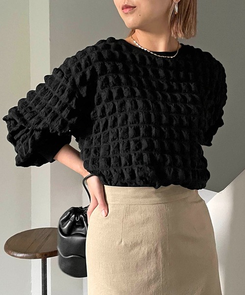 ぽこぽことした表面感がかわいいプルオーバー 商品ポイント ・シンプルなスエット型 ・1枚でトレンドライクなスタイリングが完成 ・裾、袖口、首元がリブ仕様になっておりカジュアルな印象に ・薄手で晩夏から着やすい1枚 ・インスタイルしやすい ・しゃりっとしたドライタッチな質感 スタイリングポイント ・ワイドパンツにインしてメリハリのあるスタイリングに ・タイトスカートやマーメイドスカート合わせもおすすめ ・キャミワンピなどのインナーにも ********************** 透け感:なし 裏地:なし 伸縮性:なし 光沢感:なし ********************** ▼洗濯方法 液温は30℃を限度とし、洗濯機で非常に弱い洗濯ができる ※撮影場所やお使いのモニター環境により若干お色味が異なる場合がございます。 特にロケの撮影では明るく見える傾向にございます。 ※商品はサンプルで撮影をしております。若干の仕様が変更になる場合がございますので予めご了承の上ご注文くださいますようお願いいたします。 ▼商品のお気に入り登録 完売カラーの再入荷通知や、ラスト1点の通知、セールの通知も受け取ることができます。 ▼ブランドのお気に入り登録 新商品や再入荷など、いち早くブランドのお得な情報を受け取ることができます。
