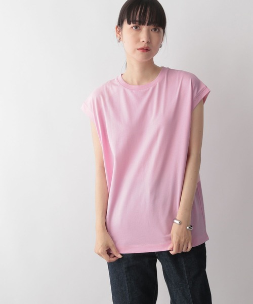 ■素材特性■USAの綿天竺を使用しています。少しキレイ目な糸を使用しています。 ■デザイン■腕回りを適度にカバーしてくれるアイテム。ゆったりめのサイズ感でインでもアウトでも着やすくしました。 ■スタイリング例■ベーシックアイテムなので様々なコーディネートで使えるアイテム。キャミワンピースやボリュームノースリーブワンピースなどワンピースのインナーとしても活躍します。