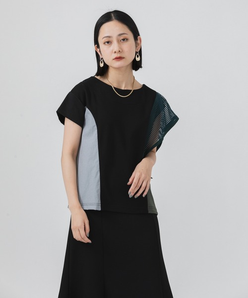 カノコやタフタ、リブ等異素材をふんだんに使用したアシンメトリーデザインプルオーバー。 ○POINT ・【doll up oops アシメパッチワークワンピース(No.84840)】と共布を使用した、様々な異素材をアシンメトリーにパッチワークしたちょっぴり個性派なトップス。 ・袖のメッシュ素材が涼し気です。 ・素材だけでなく、配色にも拘った一着です。 ・アシンメトリーな左右の袖は二の腕が気にならない長さで大人の抜け感を演出してくれます。 ○STYLING ・カジュアルなアイテムとのコーディネートはもちろん、敢えてきれいめボトムスとコーディネートする事で、洗練させた印象に。 裏地:なし 光沢:部分的に微光沢 伸縮性:あり 透け感:部分的にあり 生地の厚さ:普通 ポケット:なし 【doll up oops】 feminine「女性らしさ」& romantic「女の子らしさ」この2つのキーワードは、女性が自分自身をファッションで表現するにはかかせない言葉。 その言葉を、洋服という物の中に表現し続けていく事を永遠のテーマとしています。 女性はお洒落して行く場所、会う人によってワードローブを変化させる事が楽しみ、喜びです。 そんな楽しみに合わせてセレクトできる個性的なプリントや、インポート風の凝ったデザインをテーマに、女性らしく、可愛らしく演出できる様々なアイテムを提案しています。