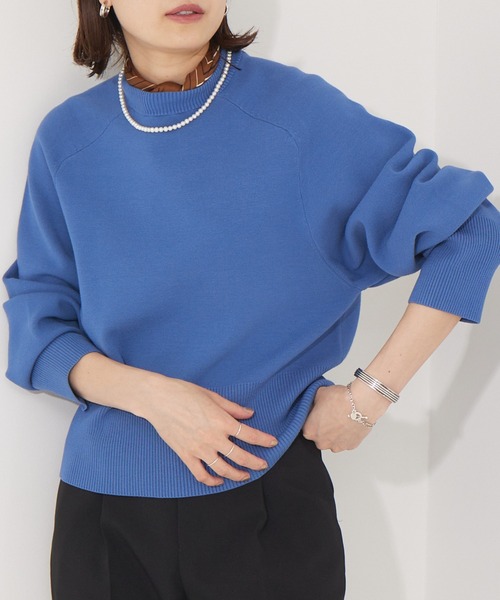 *POINT*もっちりとした風合いのストレッチニット素材を使用したシリーズ。 厚みと張りがあるしっかりとした生地感で、シルエットがきれいに出るのが特徴です。 *DESIGN* 着丈が短めでトレンド感のあるシルエット。 袖周りはボリュームがあり、ゆったりとしています。 ラグランスリーブで、シルエットにニュアンスが出るため、秋のワードローブにプラスしておくと重宝するベーシックニットです。 *COORDINATE* ショート丈のため、インしなくてもスッキリとしたバランスで着ていただけます。 通勤スタイルにはテーパードパンツやフレアスカートとの合わせがおすすめ。 首元にスカーフを巻くとトレンド感がアップします。 同一素材のフレアスカート(NO.31450047000)を合わせたセットアップスタイルも◎ 同一素材のニットベスト(NO.31450040005)もございます。 洗濯:手洗い可