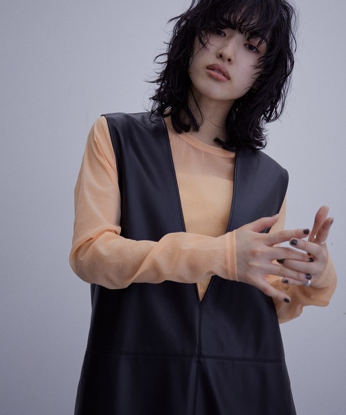 《定番人気・追加・ストレッチ素材》トレンド感のある着こなしが叶う一着。肌の透け方に新しさを感じられるシースループルオーバー◆2022-23秋冬◆ ADAM ET ROPE' FEMME 【Material】 絶妙な透け感ときれいなカラーが魅力のタフタ素材。オーガンジーとジャージー素材のあいだのような素材感で、シルエットの動きに合わせて伸び縮みするストレッチ性も魅力。 【Design】 センシュアルなシアー感が女性らしい、ロングスリーブのプルオーバー。タイトすぎない程よいサイジングで、取り入れるだけでトレンド感のあるレイヤードスタイルが楽しめる一着。表振りステッチがアクセントになっており、肌の透け方に新しさを感じられるのも嬉しいポイント。 ※春にご好評いただいた、ストレッチタフタロングTee(品番:GAM02110)よりも、サイズ感をやや大きくしております。 【Color】 ブラックよりもシアー感を楽しめるチャコールグレー、ニュアンスのあるライトグレー、春にもご好評いただいたホワイトとオレンジの、計4色展開。 【Styling point】 ベアトップをインして1枚着としても、カーディガンやジャケットのインナーとしてもおすすめ。同色はもちろん、別の色を重ねたりと様々に楽しんで。クルーネックなので、ネックレスとも好相性。 --------------- 裏地:なし 光沢感:なし 透け感:あり ポケット:なし 伸縮性:あり 生地の厚さ:薄手 洗濯方法:手洗い ボタン:なし ---------------