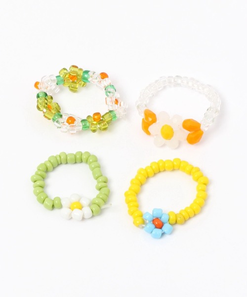 遊び心の効いたトレンドのビーズアクセ☆ーーー【デザイン】トレンドのビーズを使用したリングのセット。小さ目のハートや可憐なフラワー等、大人の方でもつけやすい程よい甘さのモチーフです。ゴム仕様なので伸び縮みし、サイズの心配なくお使いいただけます。カラーによって表情も全く違うので、様々な組み合わせでお楽しみください♪ーーー【お買い物が便利になる機能がたくさん!】 ▼商品のお気に入り登録▼ 完売アイテムの再入荷通知、ラスト1点、またクーポンやお値下げ通知をお知らせします。 ▼ブランドのお気に入り登録▼ 新商品や再入荷のお知らせ等、いち早くブランドのお得な情報を受け取ることができます。 ぜひご登録ください。