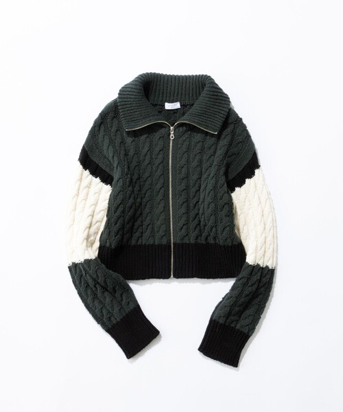【JOSEPH STUDIO】 HUSKY / CARDIGAN ショートレングスでボリューム感が可愛いバイカラーカーディガン ■デザイン 3GGで編み立てたローゲージニットのジップアップカーディガン。全体的にケーブル柄で配色切替にした70’Sスタイル。ショートレングスなので、ワンピースの上に羽織ったり、ハイウエストパンツと合わせたり、着回しが利く1着。 ■素材 未防縮ウールとハイバルキーアクリルをミックスした梳毛糸を本数取りして編み立てたローゲージニット。バルキーアクリルとは通常のアクリルとは異なり、膨らみがあり非常に軽いのが特徴。アクリル独特の落ち感も女性らしさを演出してくれる。 ※画像はサンプルを使用しているため、実際にお届けする商品と仕様やサイズが異なる場合がございます。 ※画像の商品はサンプルです。実際の商品と色味、仕様、加工、サイズ、素材等が若干異なる場合がございます。 ※照明の関係により、実際よりもやや明るく見える場合がございます。またパソコンなどの環境により、若干製品と画像のカラーが異なる場合もございます。予めご了承くださいませ。