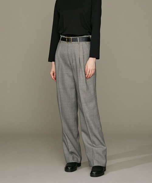 NANO universe(ナノ・ユニバース) LB.01 Statement(LB.01 ステイトメント) 『マニッシュなムードが様になる1本』 やや股上深めに2タックを効かせたマニッシュなワイドパンツ。腰周りやヒップラインのフィット感と美しいシルエットに拘り、美脚ラインを実現させました。メンズライクなディテールを取り入れつつも、太めのベルトで女性らしいバランスを実現。同素材のトップスとセットアップはもちろん、単品でも合わせやすく定番アイテムとしておすすめしたい1本です。 ―DETAIL― ・やや股上深めに2タックを効かせたマニッシュなワイドパンツ ・腰周りやヒップラインのフィット感に拘ったフォルム ・ストンと落ちる太すぎない美しいストレートワイドシルエット ・メンズライクなマーベルトや釦フライのディティール ・女性らしいバランスを演出する太めのベルト ・同素材のトップスとセットアップも◎ ・膝丈までの裏地付き ・通勤スタイルにも活躍 ―FABRIC― ・バーズアイ組織のクラシックな素材 ・梳毛で織った生地表面に起伏感のあるバーズアイ柄 ・ウール100%でありながらさらっとした軽いタッチ ・落ち着いた見え方とシャープさと上品さを併せ持つ素材感 ―SERIES― 669-2220302 LB.01/バーズアイポケット付きシャツ 長袖 669-2220303 LB.01/バーズアイワイドスリーブブラウス 長袖 669-2219303 LB.01/バーズアイジャンプスーツ 長袖 ■取扱方法 クリーニングネットを使用して下さい。摩擦や引っかけに、ご注意下さい。 ※サンプルにて撮影、採寸を行う為、実際にお届けする商品と仕様やサイズが異なる場合がございます。生産の都合上、お届け予定時期が前後する場合もございますので、予めご了承下さい。