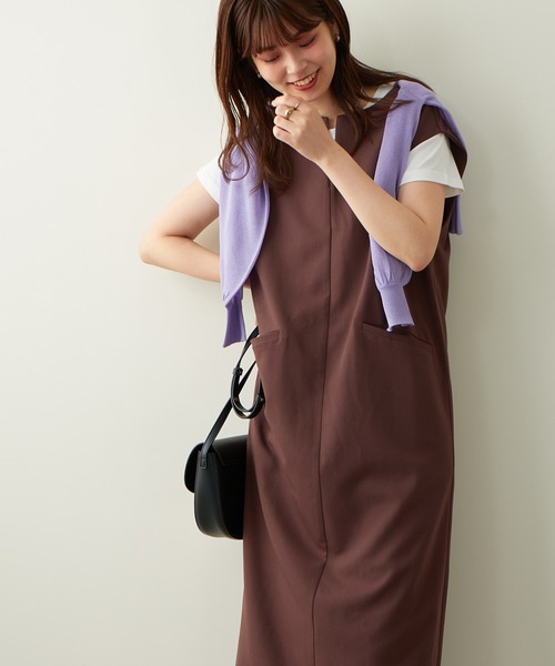 【2022AW natural couture】大人上品に決まる◎スリットネックジャンバースカート■Design程良いゆとりを持たせた身頃と丈感が、シンプルにお召し頂くだけで大人上品に決まるジャンパースカート。スリットネックデザインで、レイヤードしやすくすっきりとした印象に仕上げました。柔らかで落ち感のある生地を採用。合わせるアイテム次第でロングシーズンお召し頂ける1着です。■Stylingお手持ちのキャミソールやタンクトップをインナーにして、シンプルに1枚でお召し頂くのはもちろん、ボリューム袖のブラウスやシアー素材のトップスをレイヤードして、大人上品なスタイリングに仕上げて頂くのもおすすめです。シンプルな白Tをインナーに合わせ、お好みでデニムを裾からちらっと見せてカジュアルダウンな雰囲気でお召し頂いても◎気温やシーズンに合わせて、合わせるアイテムを変えて楽しんで頂けます。■Fabric落ち感のあるしなやかな生地を採用。ロングシーズンお召し頂けます。肩幅:46cm===============透け感:ほとんどなし裏地:なし伸縮性:なし光沢感:なし生地感 :しなやかな生地感===============【お気に入り登録でお得な情報がいっぱい】・「商品のお気に入り登録」で再入荷通知や、ラスト1点の通知、セール通知をいち早く受け取ることができます。・「ブランドのお気に入り登録」で新商品や再入荷など、お得な情報を受け取ることができます!※店舗の入荷時期は商品によって異なります。店頭の在庫状況につきましては各店舗にてお問い合わせください。