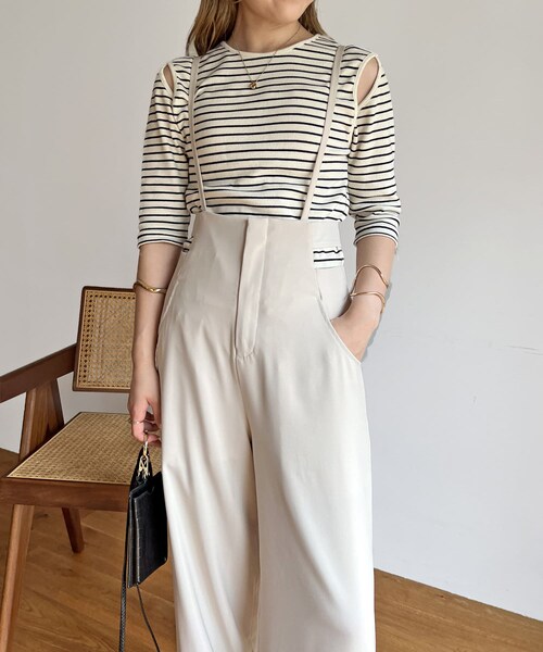 大人な印象で着られるサスペンダー付きパンツ商品ポイント・脇が開いたカットアウトデザインのサスペンダー付きパンツ・細いサスペンダーで大人っぽくきれいめな印象・すっきめのパンツで細見え効果も◎・サスペンダーがなくても骨盤で止まるのでパンツとしても使える・シーズンレスで着用可能スタイリングポイント・すっきりとしたコンパクトなトップスと相性抜群・肌寒い時期は上からざっくりとしたニットをレイヤードしても◎**********************透け感:なし裏地:あり伸縮性:なし光沢感:なし**********************▼洗濯方法手洗い可能※撮影場所やお使いのモニター環境により若干お色味が異なる場合がございます。特にロケの撮影では明るく見える傾向にございます。※商品はサンプルで撮影をしております。若干の仕様が変更になる場合がございますので予めご了承の上ご注文くださいますようお願いいたします。▼商品のお気に入り登録完売カラーの再入荷通知や、ラスト1点の通知、セールの通知も受け取ることができます。▼ブランドのお気に入り登録新商品や再入荷など、いち早くブランドのお得な情報を受け取ることができます。 #live0721