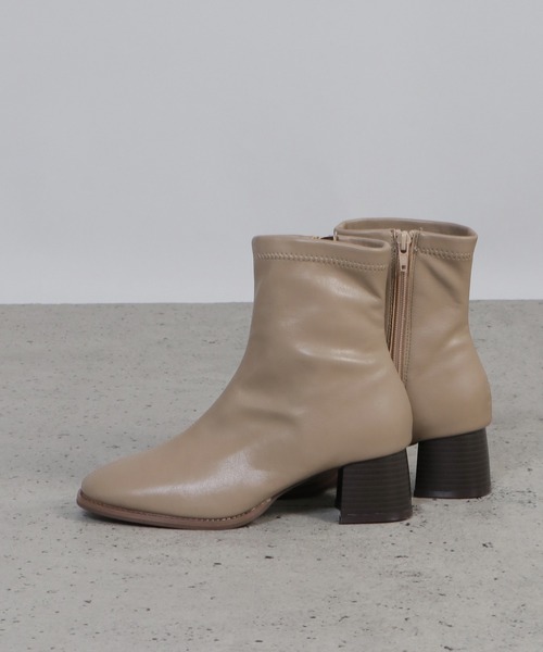 ストレッチ性があり、快適な履き心地を叶えるブーツ。便利なサイドジップ仕様にしています。太ヒールで歩きやすくて、デイリー使いにオススメです。【素材】艶感のあるレザータッチの素材。【デザイン】センターシーム形状のハーフ丈のブーツです。裏地・クッションの使用を変更しているのがしているのが昨年からの変化ポイント!【ikkaポイント】1. フカフカな2層構造(高・低反発)のクッションを使用2. 裏地は通気性の良いウレタンメッシュを使用3. 2E構造(幅広)でゆったり足入れ