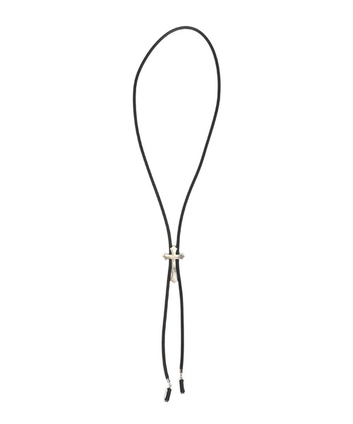 胸元にくる十字架がアクセントのループタイ。ブランドロゴの入ったチャーム付き。 A,クリアチャーム B,ブラックチャーム