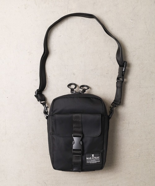 【使用シーンを問わないデザインと機能性が魅力】シンプルなスクエア型にこだわりを詰めたショルダーバッグ。コンパクトながらポケットを豊富に備えた設計で使い心地抜群。軽量かつ利便性の高い設計で、普段のタウンユースから、旅行の際のサブバッグとしてまでマルチに活躍するアイテムに。収納部はコンパクトな財布やキーケースなど外出のマストアイテムをすっきりまとめられるサイズ感。本体の内外には仕分けポケットを備えているため、バッグの中で見失ってしまいがちな鍵など小物類もしっかり管理して持ち運ぶことができます。本体素材には、落ち着いた光沢とドレープ感のある高密度ナイロン生地「N/ROBIC」を採用。劣化を防ぐために、ほつれ止めとしてソフトアクリルコーティングを、表面には汚れ等を付きにくくするための弱撥水加工を施しています。付属のカウレザーは時間が経つにつれ変色し味が出てくる風合いを楽しめます。■仕様詳細外側:バックルポケット(L)×1内側:ポケット(L)×1付属品:ショルダーストラップ×1【MAKAVELIC】 東京から世界へ……誰もが知る身近な存在。Origin(原点)から始まるEvolution(進化)それは人の成長に合わせるように進みます。街に出て遊び、旅に出て学び、人生の波長に惹かれ進む道にあるパートナー素材、機能性、耐久性、ファッション性を追求したものを生み出し、いつもあなたの隣にいる存在でありたいそんな願いを込めて誕生した、ファッション、ストリート、スポーツのクロスオーバーブランド