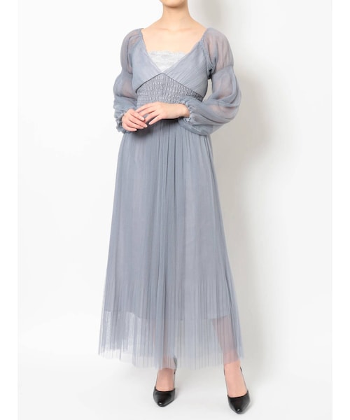 MERCURYDUO(マーキュリーデュオ)の「ギャザードレープシャーリングドレス(ドレス・レディース・ベージュ/ブルー/ダークブラウン・S/M)」の9枚目の写真