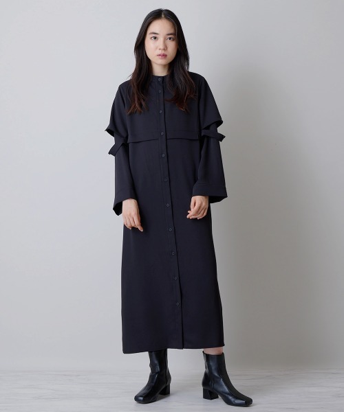 ◆首元と肩がちら見えするスリット入り!◆ ■デザイン レイヤード風デザインが特徴のワンピース。 首元に少しあいたスリットと袖のレイヤード部分に入ったスリットが 他にはないオリジナルデザインです。 袖のスリットはボタンで留めることもでき、 ちょっとした変化を楽しめるのもポイントです。 デザインに特徴をもたせながらも、 カラ―で落ち着いた印象を演出しシンプルな着こなしに◎ 落ち着きを損なわず、オリジナルの デザインでこなれ感たっぷりなのが、 韓国っぽさをブラッシュアップしてくれます。 袖がフレアシルエットなのもトレンド感満載で可愛らしい。 一枚もっていて間違いなしのマストハブアイテムです◎ ■スタイリング カジュアルにもきれいめにも着こなせるので、 小物に変化をもたせながらコーディネートを楽しめます。 ブーツ合わせもフラットシューズ合わせにもちょうどいい丈感です。 ■着用感 ゆったりとした着心地でストレスなく着用していただけます。 落ち間のある素材なので、高見え効果も発揮してくれます◎ 【158㎝ 標準体型】 …………………… 透け感:なし 厚さ:やや薄手 伸縮性:ややあり ……………………