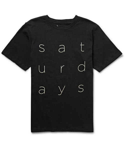 The minimal sans-serif font and pared-back crew neck cut makes Saturdays Surf NYC 's T-shirt an effortlessly way to get a hit of East Coast cool. Designed for a streamlined yet relaxed fit from soft cotton-jersey, it's ideal for off-duty wear. Try yours with grey sweatpants for the most laid-back feel. Shown here with a Saturdays Surf NYC shirt , J.Crew jeans and J.Crew messenger bag , Timex x J.Crew watch and Nike sneakers . Black and off-white printed cotton-jersey T-shirt Crew neck 100% cotton Machine wash